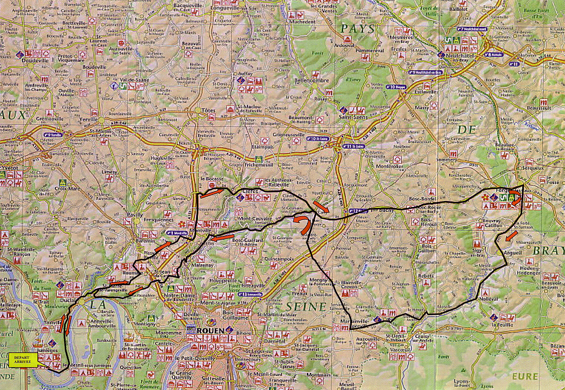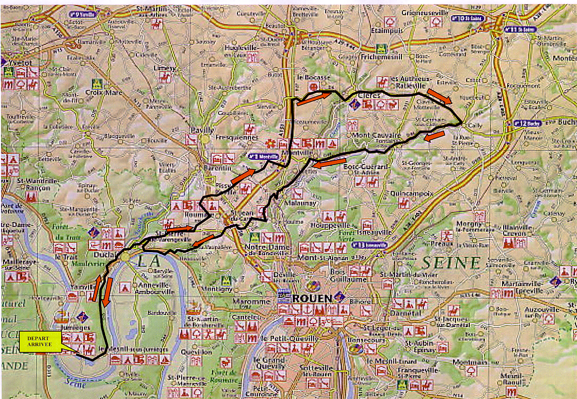 * une légère modification du parcours à Duclair: à l'aller, sur le quai, on passera tout droit jusqu'au carrefour du bac, puis à gauche.