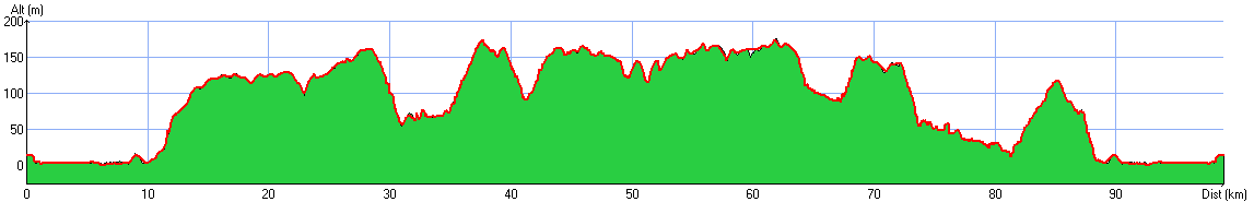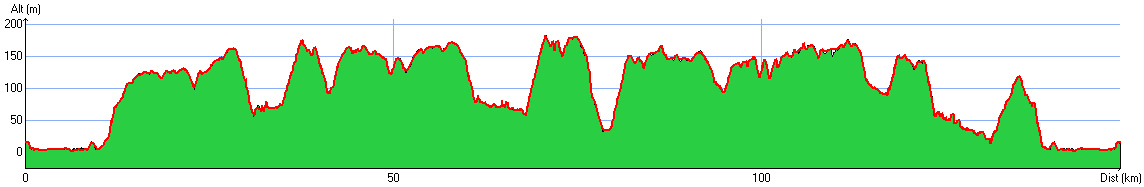 Même début et fin que le parcours de 147km, mais bifurque à gauche à Saint Victor l'Abbaye pour rejoindre directement le parcours de retour |