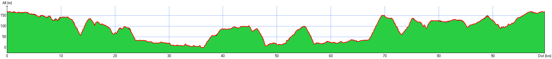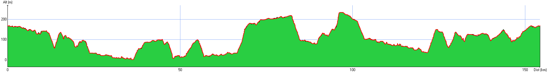 Même début et fin que le parcours de 155km, mais écourté par un tout droit à Torcy le Petit vers Torcy le Grand. |